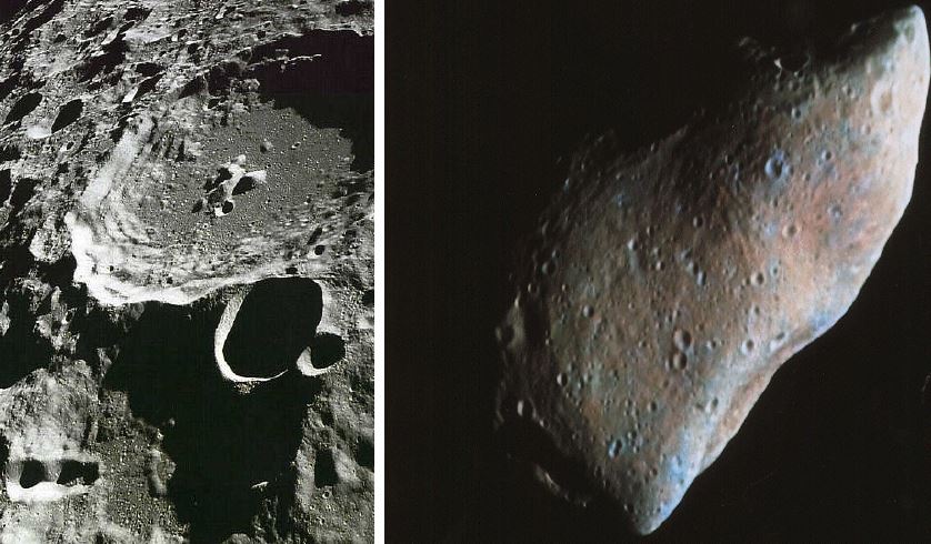 Superficie de la luna y Asteroide Gaspra (Fotos cortesia NASA)