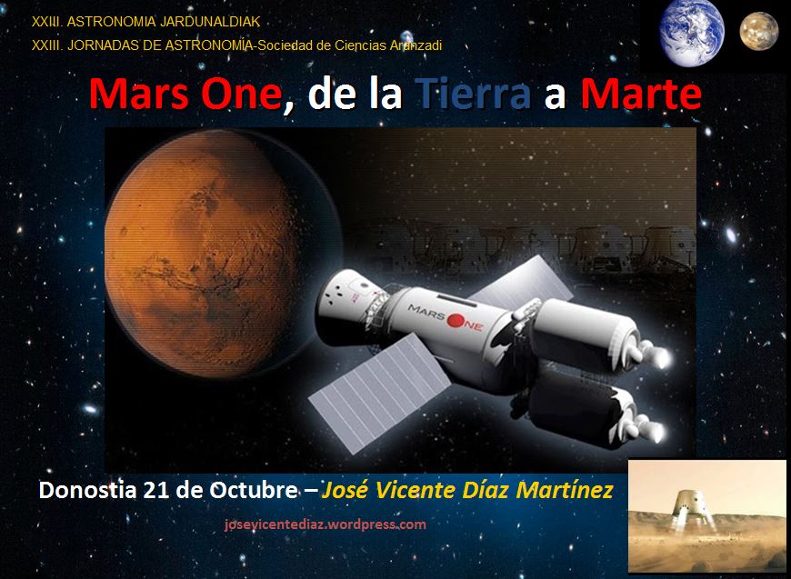La Sociedad de Ciencias Aranzadi de Donostia me invitó a sus XXIII jornadas astronómicas como ponente, jornadas que celebraron el 21 y 22 de octubre. Mi conferencias se tituló: «Mars One: de la Tierra a Marte». Hubo mucho éxito de participación en las jornadas con lo que me alegro mucho pues esta Sociedad Astronómica hacen una labor de divulgación enorme y se merecen muchos éxitos.