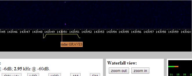 -Elegir en ancho de banda USB en el menú e ir jugando con la forma de la ventana, cuando veáis una reflexión en la imagen, como un pequeño trazo, colocar la barra amarilla justo sobre esa frecuencia y podréis escuchar el paso de un meteoro. Para ver mejor las reflexiones realizaremos un zoom en el Waterfall view, marcando la casilla max in.