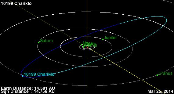 Simulación de la órbita del asteroide (10199) Chariklo.