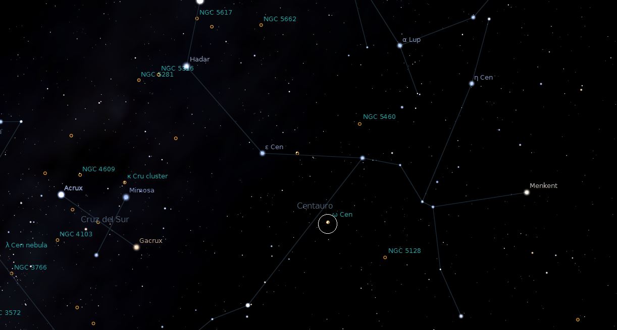 Ubicación de Omega Centauri en la constelación del Centauro: