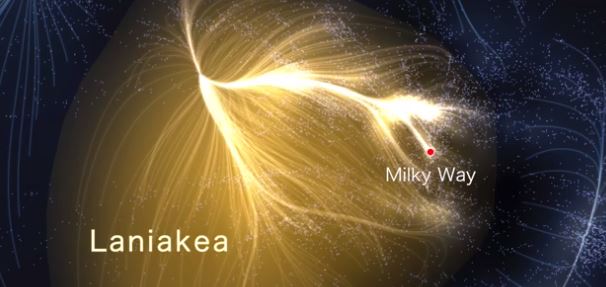 El equipo utilizó una base de datos 2 que compila las velocidades de 8.000 galaxias. Por otra parte, los movimientos de las galaxias reflejan la distribución de toda la materia, no sólo lo que es visible en nuestros telescopios sino también la materia oscura. Hasta este estudio los científicos colocaban a la Vía Láctea en el supercúmulo de Virgo, pero bajo tras el nuevo mapeo del cielo se puede decir que esta región se convierte en sólo un apéndice otra mucho más grande «Laniakea», que es de 160 millones de parsecs (520 millones de años luz) de ancho y contiene la masa de 100 millones mil millones de Soles. Por tanto somos muy muy pequeños 🙂