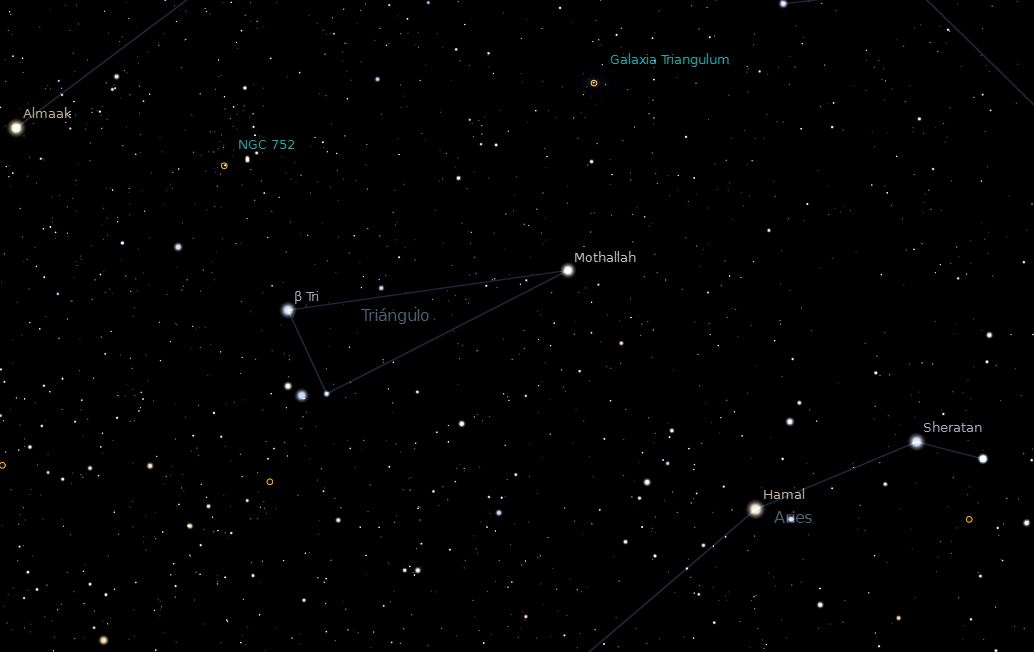 La constelación del Triángulo la podemos encontrar entre las constelaciones de Aries y de Andrómeda, la conforman tres estrellas que dan forma a un triangulo isósceles.