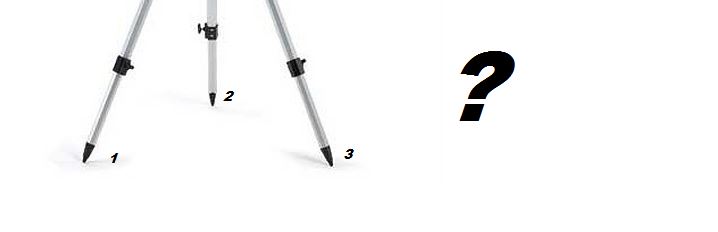 Imagen de un trípode de un telescopio, y su colocación correcta para colocarlo en modo estación (ver uso de telescopios)