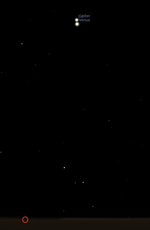 A partir de la puesta de Sol podremos ver a estos dos planetas muy próximos aparentemente entre sí, lo bastante como para verlos a la vez con un telescopio, sí no disponemos de uno unos unos buenos prismáticos también sirven.