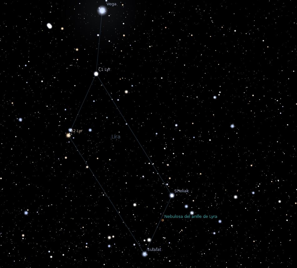 Podemos localizar a la nebulosa del anillo en la parte inferior de la constelación de la Lyra, estas noches de verano son muy buenas para ver esta constelación pues la constelación de la Lyra es una de las constelaciones del triángulo del verano.