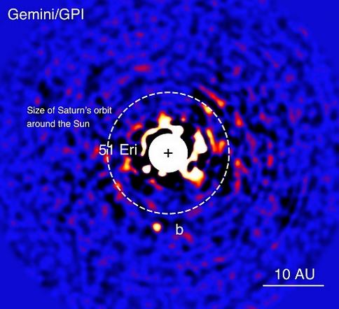 Los astrónomos del Observatorio Gemini utilizando el instrumento Gemini Planet Imager (GPI) han podido fotografiar por primera vez y directamente un planeta de tipo Joviano (parecido al planeta Júpiter) alrededor de una estrella. El planeta tiene dos veces la masa del planeta Júpiter y orbita una joven estrella llamada 51 Eridani, al planeta se le ha llamado 51 Eridani b, su estrella se encuentra a 100 años luz del Sol.