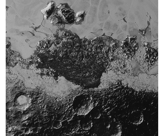 Imagen cabecera de entrada: sistemas montañosos helados de Plutón, créditos NASA