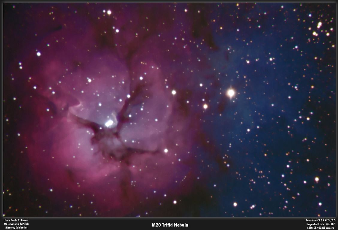 M20, Imagen del astrofotógrafo Juan Pablo Trapero Revert (Observatorio Júpiter)
