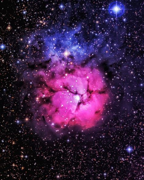 La podemos observar en la constelación de Sagitario y se encuentra a 5000 años luz de nosotros. Es una nebulosa muy peculiar pues es una combinación inusual de cúmulo abierto de estrellas, nebulosa de emisión (parte inferior de color rojo), nebulosa oscura (las líneas oscuras) y nebulosa de reflexión (parta superior azulada). La región en la que se encuentra está llena de objetos muy interesantes, cerca de ella está la famosa Nebulosa de la Laguna.