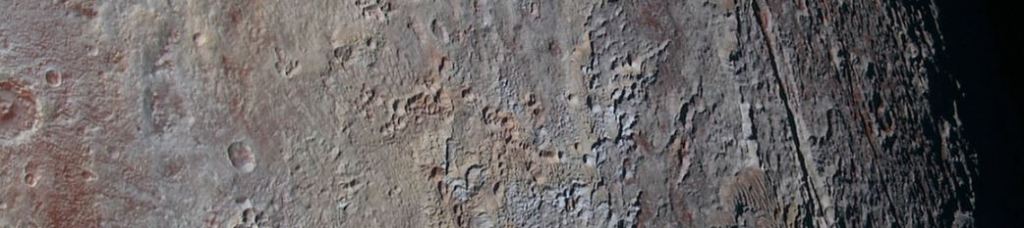 La imagen combina imágenes azules, rojas e infrarrojas tomadas por el instrumento Ralph/Multispectral Visual Imaging Camera (MVIC). La superficie de Plutón luce con una extraordinaria gama de colores muy sutiles. Se pueden apreciar una gran cantidad de detalles que revelan la enorme complejidad de la historia geológica y climatológica del planeta enano Plutón y que tanto está sorprendiendo a los científicos. La imagen resuelve detalles y colores en escalas tan pequeñas como 1,3 kilómetros.