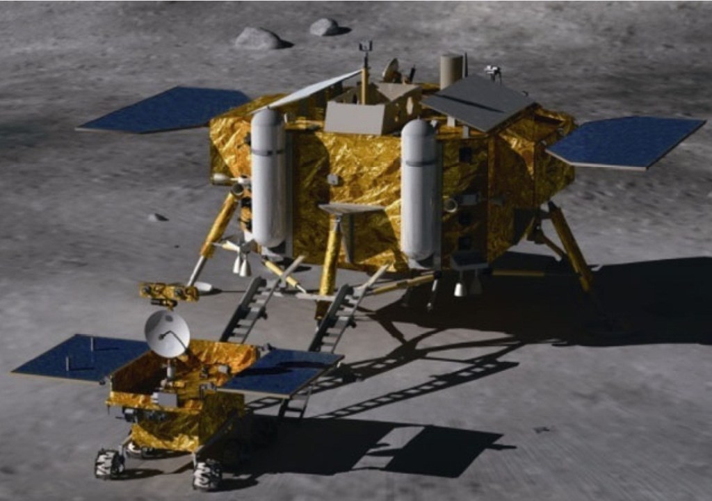Imagen: Rover Yutu, El rover encontró dificultades operativas después de la primera noche lunar de 14 días (después de un mes en la Luna), fue incapaz de moverse después del final de la segunda noche lunar, aunque continuó enviando información útil algunos meses después. Dejó de transmitir los datos de marzo de 2015.