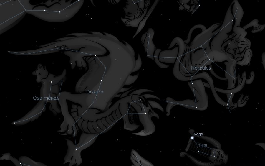 En el cielo se pueden ver reflejadas muchas historias mitológicas, el azar, la forma causal que le hemos dado al grupo de estrellas que forman las constelaciones hacen que a veces se intuyan objetos, animales, héroes que dibujan su forma en el fondo de las estrellas, curiosamente en el cielo podemos ver al Héroe mitológico Hércules peleando con un Dragón.