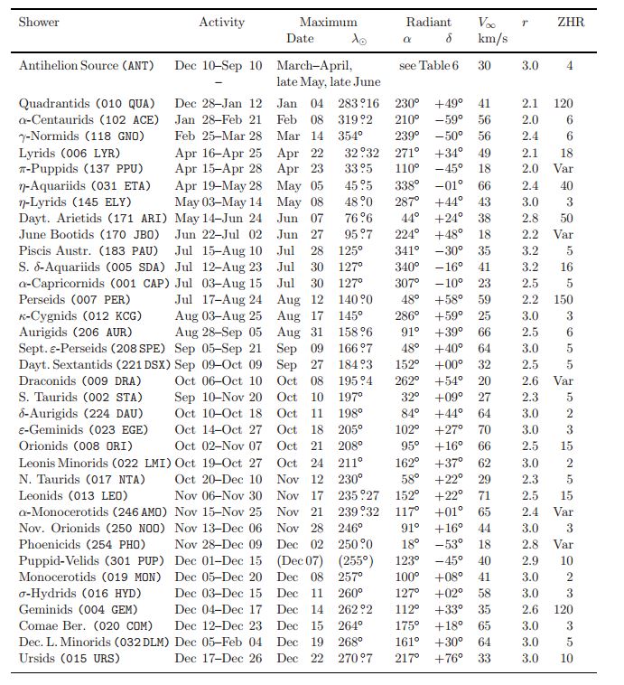 -Lluvias anuales de meteoros, explicación de las lluvias: