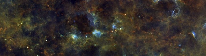 Este espectacular vídeo de cientos de horas de observaciones del telescopio espacial Herschel muestra una gran cantidad de fuentes luminosas, filamentos tenues y burbujeantes nebulosas en el interior de una enorme cantidad de gas difuso y polvo, marcando los puntos donde nacen las estrellas en nuestra Galaxia, la Vía Láctea. El vídeo se extiende por una vasta porción del plano de nuestra galaxia, casi el 40%.