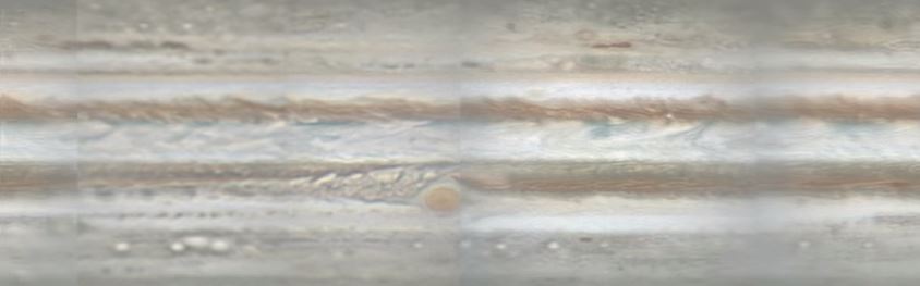 En el vídeo podemos comparar las imágenes ópticas de las nubes superficiales que rodean la zona del ecuador de Júpiter con las nuevas imágenes de radio de la atmósfera profunda. El mapa de radio (en blanco y negro) muestra como los gases ricos en amoniaco se elevan a la superficie (color oscuro) entremezclándose con el descendente, gases pobres en amoniaco (zonas brillantes).
