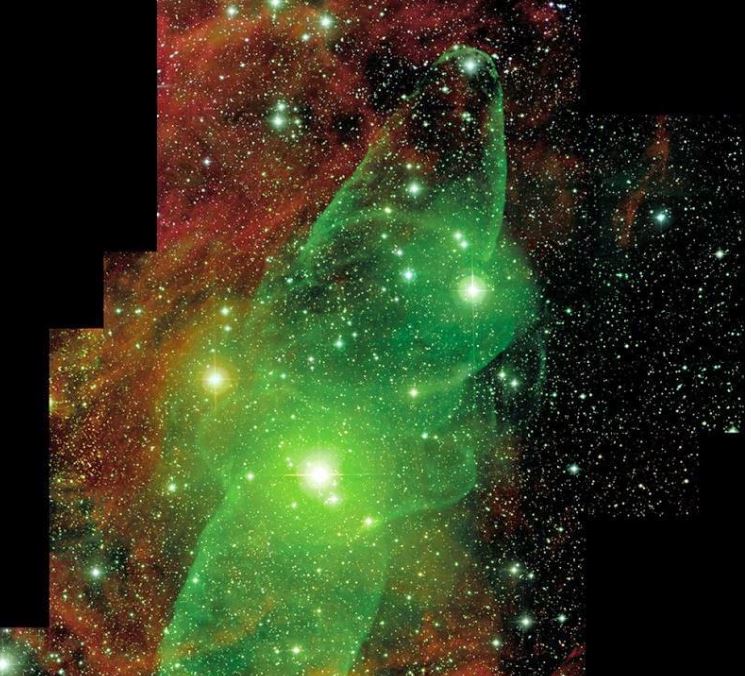 La Nebulosa del Calamar gigante se trata de una nebulosa muy débil, llamada Ou4, pero muy grande en el firmamento del planeta Tierra. Podemos apreciarla en la imagen siguiente, compuesta con los datos de banda estrecha obtenidos desde el telescopio Isaac Newton de 2,5 metros: