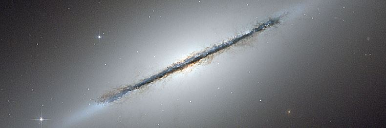 La galaxia NGC 5866 se encuentra a unos 44 millones de años luz de distancia en dirección a la constelación del Dragón. Parece una galaxia muy delgada, pero lo que realmente ocurre es que la vemos así desde nuestra perspectiva desde la Tierra.
