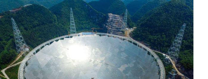 La construcción del proyecto de FAST se inició en 2011 y se ha completado en julio de 2016. Se espera que entre en funcionamiento en septiembre de 2016. Mide 500 m de diámetro y se ha diseñado a partir del gran radiotelescopio de Arecibo.