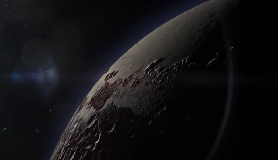 El siguiente vídeo es espectacular, es una composición de imágenes del sobrevuelo de la sonda New horizons por las montañas Norgay de Plutón y por la llanura Sputnik. Los montes Norgay han sido nombrados así por Tenzing Norgay, uno de los dos primeros seres humanos en llegar a la cima del Monte Everest. La llanura Sputnik ha recibido ese nombre por el primer satélite artificial en orbitar la Tierra. Las imágenes fueron adquiridas por el instrumento de Largo Alcance (LORRI) el 14 de julio a una distancia de 77.000 kilómetros.
