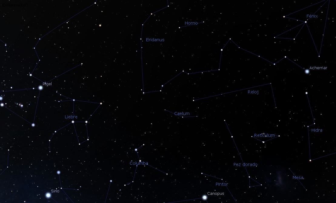 ⦁ Y siguiendo la línea formada por Caelum y Lepus, y rodeada por la constelación de Eridanus, nos encontramos con la constelación Fornax u Horno.
