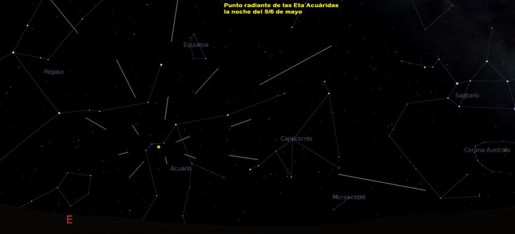En el mes de mayo tenemos una gran lluvia de meteoros, las Eta Acuáridas (punto radiante en la constelación de Acuario).