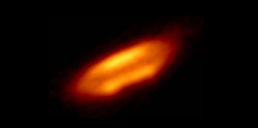 Una mirada más cercana a HH 212 revela grandes rayas frías y oscuras de paso de polvo a través del disco, en medio de dos regiones más brillantes calentadas por la protoestrella. Este descubrimiento podría proporcionar indicaciones sobre el nacimiento de los sistemas planetarios.