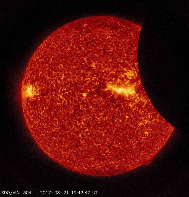 Imagen de la Luna transitando a través del Sol, tomada por la sonda de observación del Sol SDO en luz ultravioleta el 21 de agosto de 2017. Crédito: NASA / SDO
