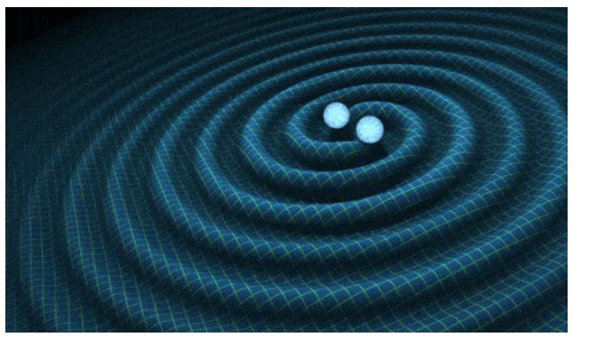 Ondulaciones en el espacio-tiempo generadas por las estrellas de órbitas muy rápidas (estrellas de neutrones, enanas blancas o agujeros negros). ver animación