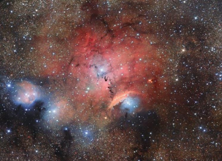Parte del cielo capturado en este impresionante vídeo está contenido en el catálogo Sharpless de regiones H II, es decir, nubes de iones interestelares, donde nacen nuevas estrellas. Sharpless 29 se encuentra a unos 5.500 años luz de distancia, mide solo unos pocos años luz de ancho, es una brillante muestra del caos que son capaces de causar las estrellas inherentes a la nube interestelar. Las estrellas calientes capturadas en esta imagen no tienen más de 2 millones de años e irradian su entorno con radiación de alta energía. El objeto lo podemos encontrar en la constelación de Sagitario, junto a la famosa Nebulosa de la Laguna.