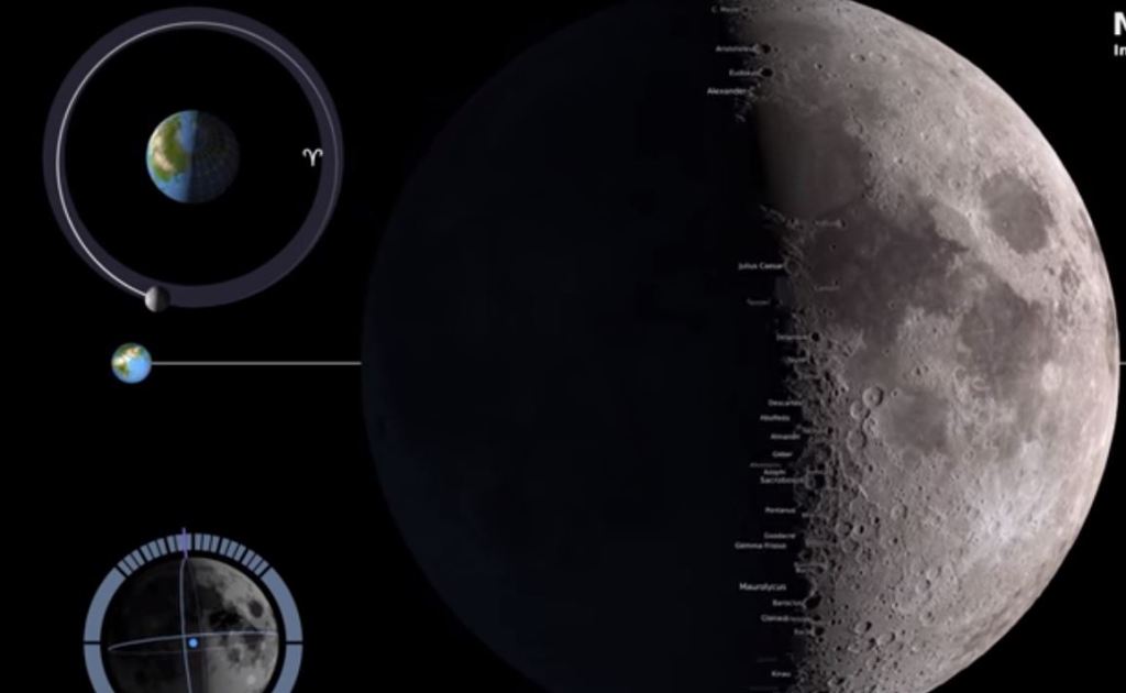Estos dos vídeos realizados por NASA muestran las fases de la Luna y las libraciones de esta a intervalos de una hora a lo largo de todo el año 2018, según se ve desde el hemisferio norte en el primer vídeo y como se aprecia desde el hemisferio sur en el segundo. Cada fotograma representa una hora. Además, esta visualización muestra la posición de la órbita de la Luna, la distancia de la Tierra a escala real y las etiquetas de los cráteres cerca del terminador.