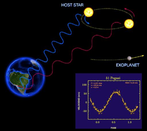 1) Velocidad radial: Este método se basa en el Efecto Doppler. El planeta, al orbitar su estrella, ejerce una fuerza gravitacional sobre ésta de manera que la estrella gira sobre el centro de masa común del sistema.