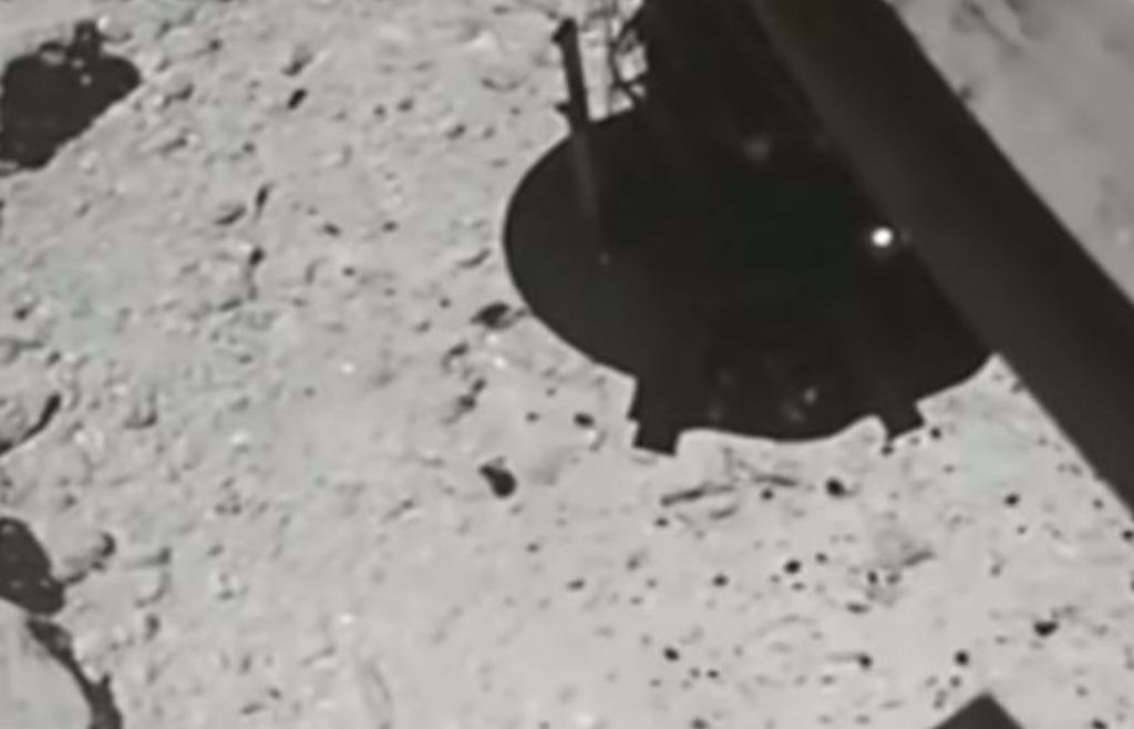 La sonda Hayabusa 2 de JAXA recogió una muestra del asteroide Ryugu el 22 de febrero de 2019. El impresionante vídeo que podéis ver a continuación se capturó usando la cámara (CAM-H). La imagen del sitio inmediatamente después de la toma de contacto se tomó con la cámara de navegación óptica – gran angular (ONC-W1).