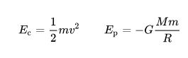Deducción de la velocidad de escape, se ha igualado la energía cinética con la energía potencial gravitatoria. Donde en las anteriores formulas m es la masa del objeto que queremos que escape, v es su velocidad, G es la constante gravitacional universal (6.67 x 10 -11 m 3 kg -1 s -2 ), M es la masa del planeta y R es el radio del planeta.