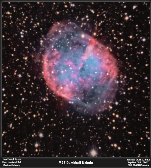 Como bien dice el título la Nebulosa Dumbbell es una de las mejores vistas que nos puede ofrecer el firmamento, simplemente con prismáticos o pequeños telescopios ya podemos apreciar en la constelación de Vulpecula esta preciosa nebulosa planetaria.