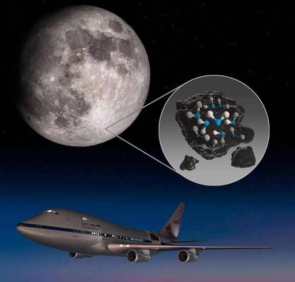En esta ocasión ha sido desde el Observatorio Estratosférico de Astronomía Infrarroja (SOFIA) de la NASA. SOFIA ha detectado moléculas de agua (H2O) en el cráter Clavius, uno de los cráteres más grandes visibles desde la Tierra y en la cara visible desde la Tierra, ubicado en el hemisferio sur de la Luna. Los datos revelan agua en concentraciones de 100 a 412 partes por millón, aproximadamente equivalente a una botella de agua de 0.35 litros, atrapada en un metro cúbico de suelo esparcido por la superficie lunar.