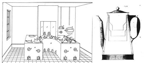 De esta época son también sus Chimeneas Rumford –populares en Londres-, sus hornos industriales y sus aparatos de medición del calor.