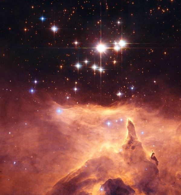 Si viajamos a unos 8.000 años luz de distancia hacia la constelación de Escorpio nos encontraremos, entre otros cientos de objetos, con un cúmulo de estrellas masivas muy jóvenes llamado Pismis 24, este impresionante cúmulo realiza una curiosa acción sobre una nebulosa, desencadena una intensa radiación y vientos enormes que ha creado una cavidad en la nebulosa que esta junto a las estrellas, zona que es donde se formaron esas estrellas. Esto lo podemos apreciar en esta espectacular imagen obtenida desde el telescopio espacial Hubble donde se muestra el cúmulo y parte de la nebulosa, llamado NGC 6357.
