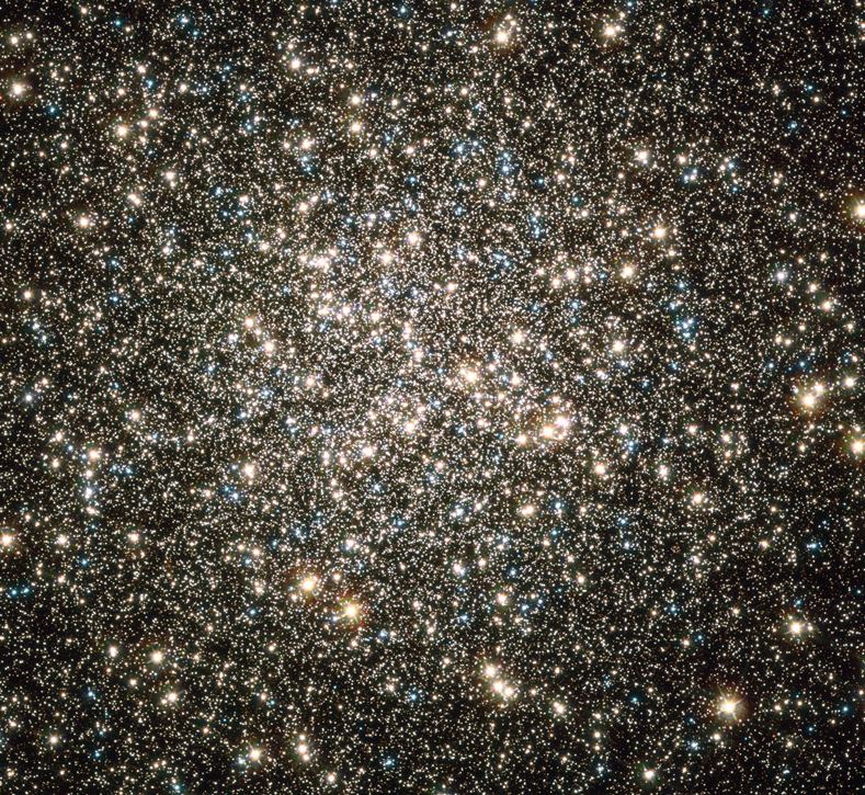 El cúmulo mide unos 150 años luz de diámetro y alberga más de 100.000 estrellas. Créditos: Telescopio espacial Hubble.