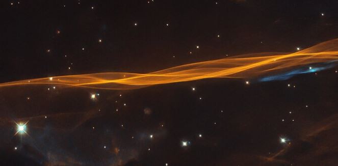 - Julio: Esta imagen muestra una pequeña sección de la onda expansiva de la supernova Cygnus, ubicada a unos 2400 años luz de distancia en la constelación del Cisne: