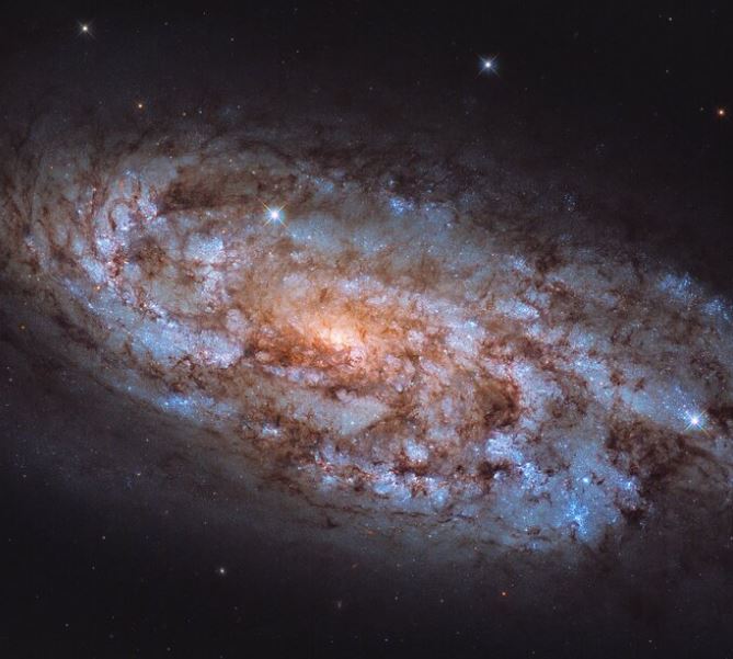 - Septiembre: Las vastas franjas de azul revelador que se ven en toda la galaxia NGC 1792 indican áreas que están llenas de estrellas jóvenes y calientes, y es en tonos naranja en el centro donde residen las estrellas más viejas y frías: