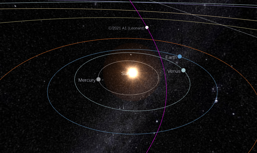 Se descubrió en enero de 2021 por GJ Leonard en el Observatorio Mount Lemmon, el cometa es un objeto de largo periodo que pasará cerca de la Tierra el 12 de diciembre de 2021 y alcanzará su punto más cercano al Sol el 3 de enero de 2022, después de ese acercamiento pasará a alejarse rápidamente del Sol en su camino fuera de nuestro sistema solar, y seguramente no volverá jamás.