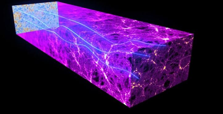 Si el Universo es finito, eso significa que en una geometría bidimensional sería como un toroide. Ahora, pensemos en un toroide. En tal Universo, la luz que viaja sobre la superficie de un toroide puede tomar dos caminos: puede ir por los lados pero también puede ir en línea recta. Esto significa que si el Universo es como un toroide, la luz puede tener diferentes caminos para llegar al mismo punto. Puedes tener un camino largo y un camino corto. Significaría que cuando se mide el fondo cósmico de microondas se verán patrones extraños en el cielo, porque la luz de lejos no nos habría llegado en línea recta debido a la topología del Universo. Entonces, la esperanza sería, eventualmente, buscar esos patrones extraños en el cielo y sabríamos sí es finito.