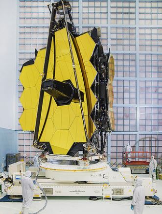 El telescopio espacial James Webb (JWST o Webb) es un observatorio infrarrojo en órbita que complementará y ampliará los descubrimientos del fructífero telescopio espacial Hubble , con una cobertura de longitud de onda más larga y una sensibilidad muy mejorada. Las longitudes de onda más largas permiten a Webb mirar mucho más cerca del comienzo del tiempo y buscar la formación no observada de las primeras galaxias , así como mirar dentro de las densas nubes de polvo donde se están formando las nuevas estrellas y los sistemas planetarios.