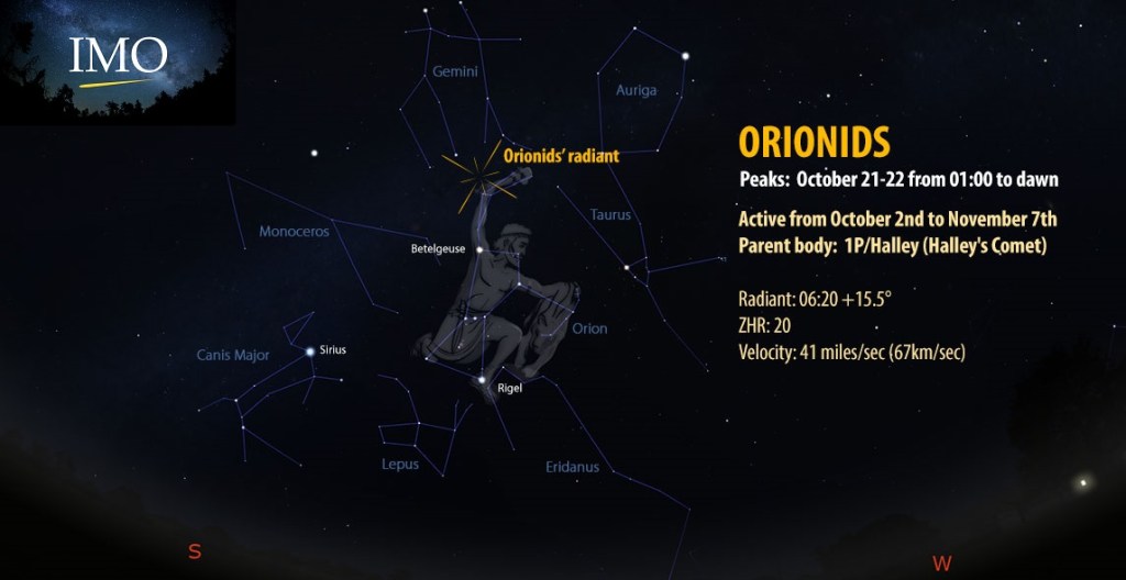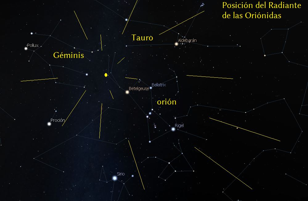 En el mes de octubre tenemos una lluvia de estrellas fugaces muy interesante, las Oriónidas. La lluvia dura desde el 2 de octubre hasta el 7 de noviembre, con un máximo de actividad que ocurrirá la noche del 20/21 de octubre.