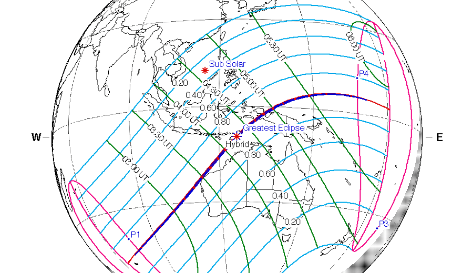 La trayectoria del eclipse comenzará en el sur del Océano Índico y se moverá a través de partes del oeste de Australia y el sur de Indonesia. Un eclipse parcial será visible en la mayor parte de Indonesia y Australia.