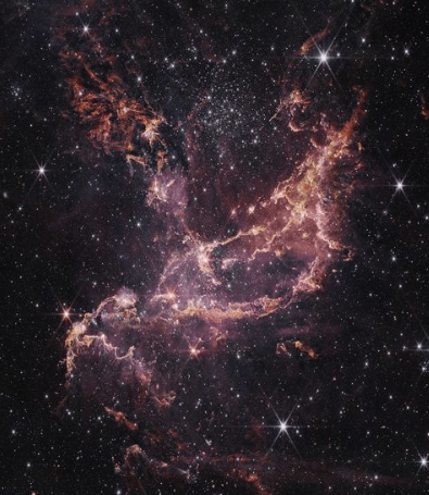 El telescopio espacial James Webb no deja de sorprendernos con sus descubrimientos. Mirando a la nebulosa NGC 346, que consiste en un grupo joven de estrellas rodeados de gas y polvo, el telescopio encontró focos de formación estelar nunca antes vistos.