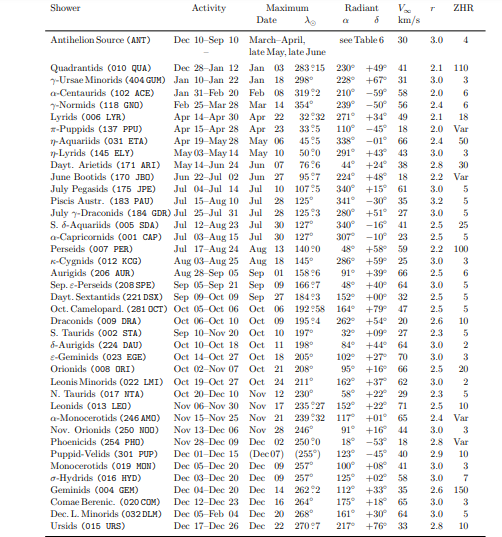 Los meteoros (estrellas fugaces) están asociados a cometas y asteroides, estos cometas y asteroides siguen órbitas alrededor del sol, entonces los restos de estos cuerpos (los Meteoroides) estarán a lo largo de la misma órbita que el cuerpo del que ha sido eyectado, por tanto podemos conocer de qué cuerpo menor proviene el meteoro solo con calcular su órbita, así a lo largo del año podemos ver diversas lluvias de meteoros como es el caso de las Perseidas (asociada al cometa 109P/Swift-Tuttle) de Agosto o de las Leónidas (asociada al cometa Tempel-Tuttle) de Noviembre, estas lluvias se presentan en periodos temporales según la época del año, como hemos dicho las perseidas se presentan en agosto, concretamente del 25 de julio hasta el 27 de agosto, con un día de máximo de apariciones de meteoros que se suele presentar la noche del 12 al 13 de agosto, este día es cuando la tierra intercepta una mayor densidad de partículas en su órbita y es cuando se pueden observar más estrellas fugaces. Al número máximo de meteoros por hora se le denomina THZ y es el número que se observaría si el radiante estuviera en culminación y con una atmosfera estable y limpia, la THZ de las perseidas suele estar en 80 meteoros/hora. Si se produce el paso de su cometa asociado, en los próximos años se verá incrementado el número de meteoros observables pues habrá repoblado su órbita de nuevos meteoroides.
