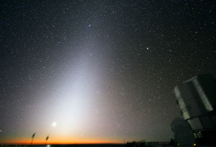 Un fenómeno curioso observable en lugares alejados de la contaminación lumínica es la Luz Zodiacal, esta es un resplandor blanco tenue, difuso y casi triangular que es visible en el cielo nocturno y parece extenderse desde la dirección del Sol y a lo largo de las constelaciones del zodiaco ,sobre la eclíptica. La luz solar dispersada por el polvo interplanetario causa este curioso y esquivo fenómeno. La luz zodiacal se ve mejor durante el crepúsculo después de la puesta de sol en primavera y antes de la salida del sol en otoño, cuando las constelaciones del zodiaco están en un ángulo inclinado hacia el horizonte. Sin embargo, el brillo es tan tenue que la luz de la luna o la contaminación lumínica lo eclipsan, haciéndolo invisible.