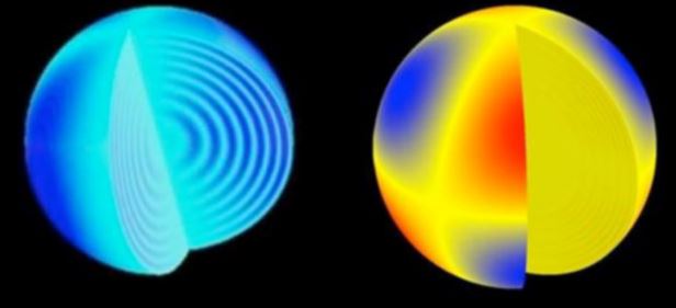El movimiento de las placas tectónicas provoca terremotos en nuestro planeta, y el movimiento del gas dentro de las estrellas produce ondas sísmicas que alteran su superficie y producen oscilaciones. Las ondas sísmicas son ondas sonoras, pero con una frecuencia tan baja que el oído humano no puede detectarlas. La frecuencia de las oscilaciones de una estrella dependerá de su estructura por tanto estudiando esas oscilaciones podemos saber mucho del interior de las estrellas.